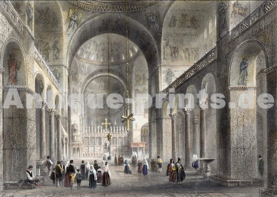 Italie. Gravure sur acier, gravée par J. Riegel d´après F. Chevalier. 1860. Légères salissures dans la marge inférieure. Aquarellée à la main. 19x12,5cm. Montée sous passe-partout.