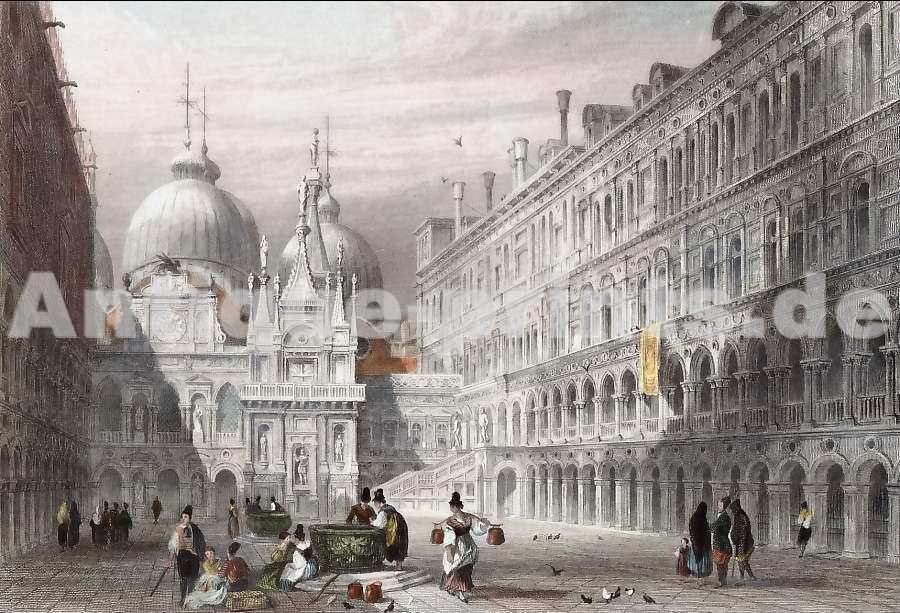 Terre Sainte. Gravure sur acier, gravée par H. Winkles d´après G. W. Terry. 1851. Très bon état. Bordure décorative. Aquarellée à la main. 17x11,5cm. Montée sous passe-partout.