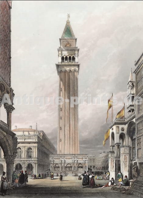 Italy. Original wood engraving, engraved by A. Closs and W. Werkmeister after Bauerfeind. 1874. Very good condition. Hand-coloured. 24,5x16cm. Matted.