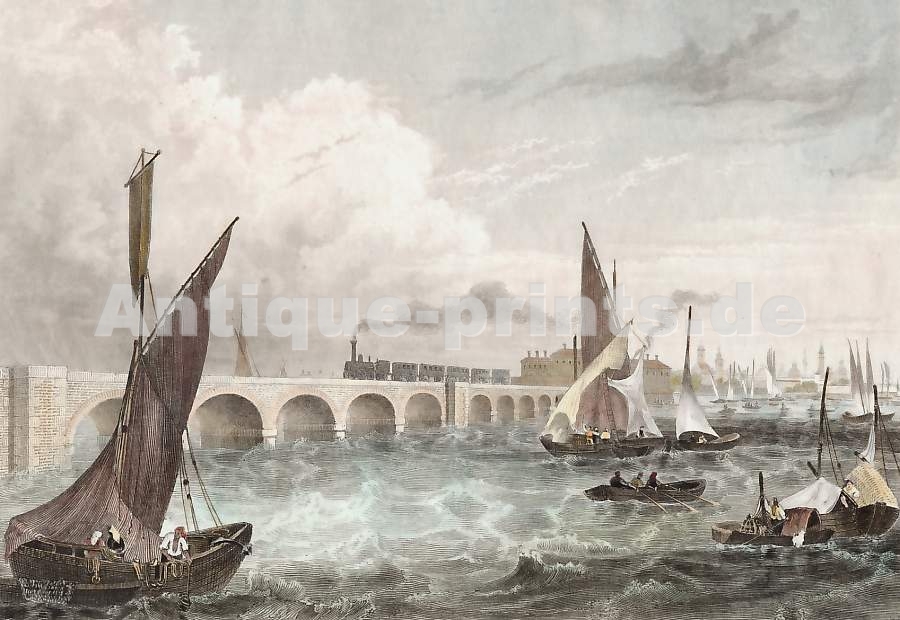 France. Original steel engraving, engraved by H. Winkles after J. Nash. 1829. Very good condition. Hand-coloured. 14x8cm. Matted.