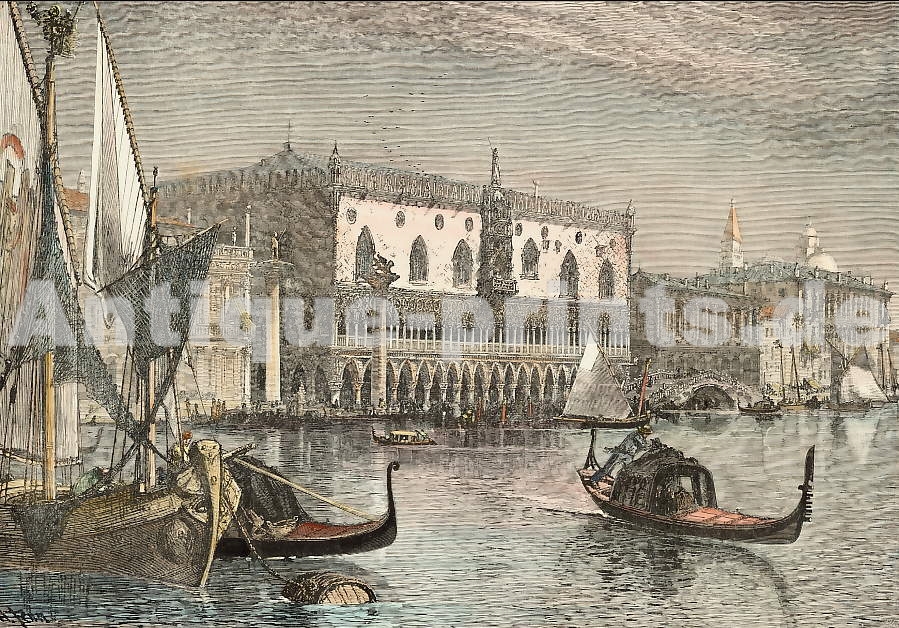 India. Original steel engraving, engraved by Lemaître, inspired by a miniature. 1845. Very good condition. Hand-coloured. 14x9cm. Matted.