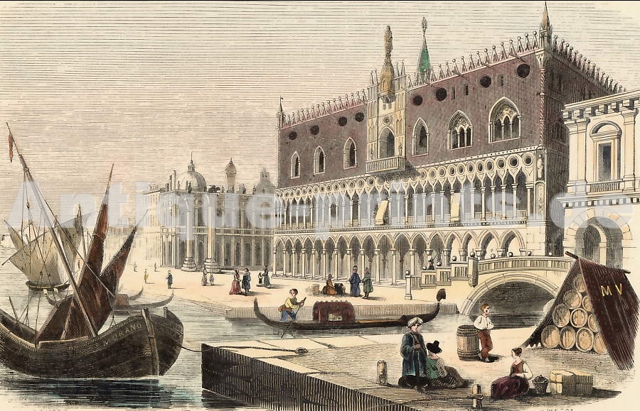 Czechia. Original wood engraving, engraved by Duverger. 1843. Good condition, creasing. Hand-coloured. 15x8cm. Matted.