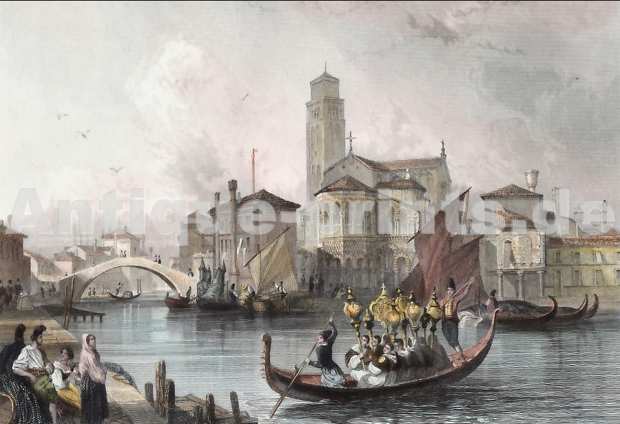 India, Original steel engraving, engraved by J. C. Varrall after T. C. Dibden. 1858. Very good condition. Hand-coloured. 19x12,5cm. Matted.