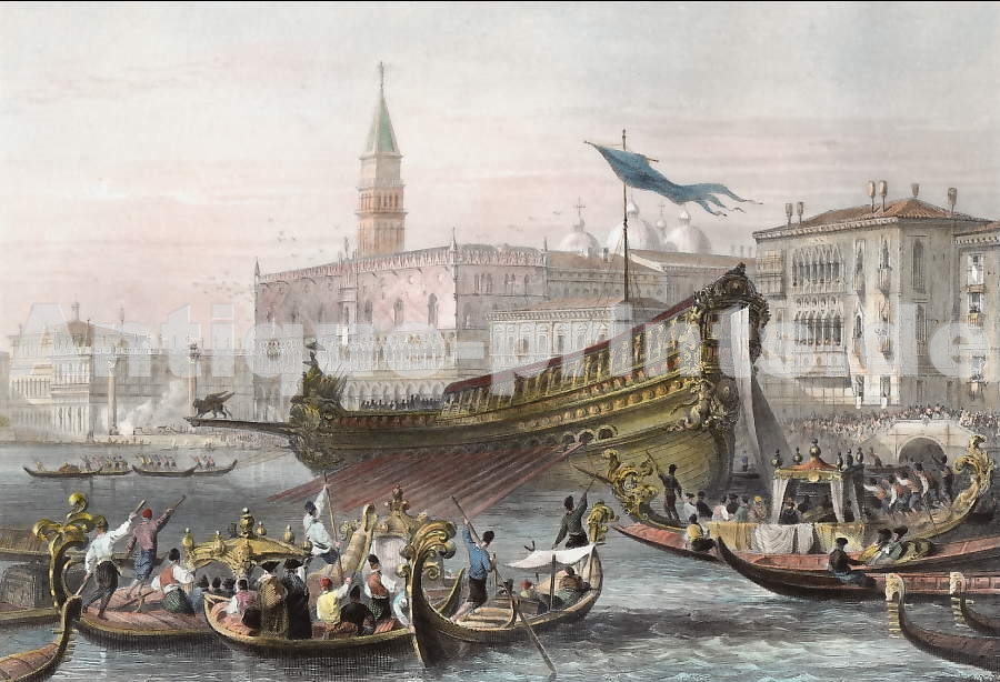India. Original steel engraving, engraved by W. D. Taylor after W. Daniell. 1834. No title on the plate. Good condition. Hand-coloured. 13,5x9,5cm. Matted.