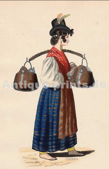 France. Original lithograph by J. Desjardins after Anais Toudouze. 1859. Very good condition. Original hand-colouring. 19x14cm. Matted.