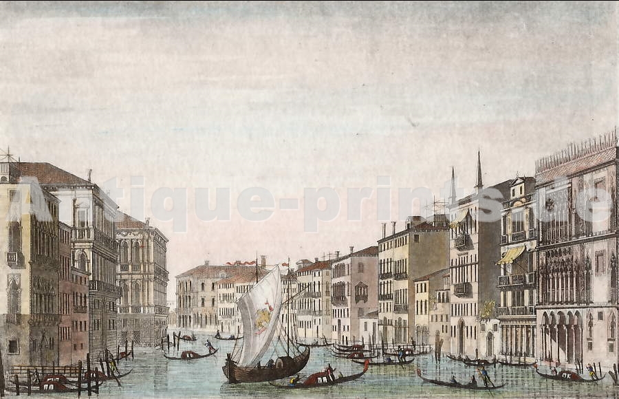 Italy. Original wood engraving, engraved by Duverger after Evrard. 1843. Very good condition. Original hand-colouring. 16,5x9cm. Matted.