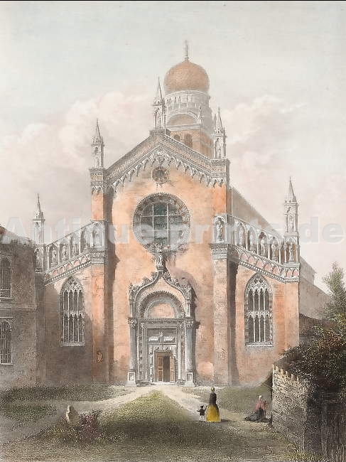 Italy. Original steel engraving, engraved by R. Wallis after S. Prout. 1829. Good condition. Hand-coloured. 14,5x9,5cm. Matted.