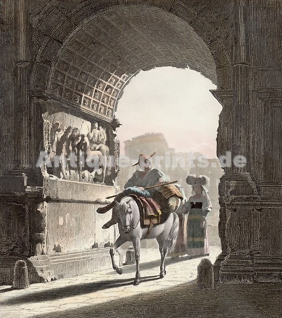 Genre. Gravure sur acier, gravée par T. Heawood d´après le tableau de W. Collins Rustic Civility. ca 1850. Très bon état. Aquarellée à la main. 18,5x14cm. Montée sous passe-partout.