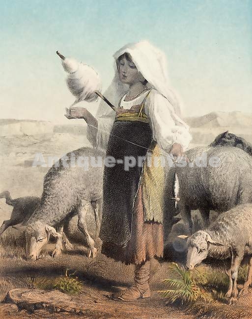 Italien, Italie, Gravure, Italy, Stich, Engraving, Italia, Rome, Roma, rom, Bergère, shepherd