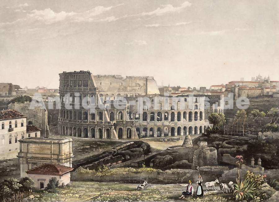 Italie. Gravure sur bois, gravée par A. Closs d´après Keller. 1877. Très bon état. Aquarellée à la main. 24,5x18,5cm. Montée sous passe-partout.