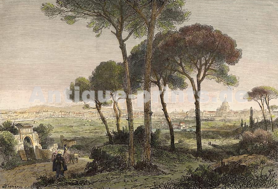 Italie. Gravure sur acier, gravée par A. H. Payne (d´après G. B. Piranesi). ca 1850. Bon état. Aquarellage ancien. 17,5x12cm. Montée sous passe-partout.