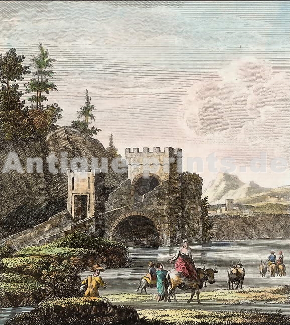 Italie. Gravure sur bois, gravée par A. Closs d´après R. Schick. 1877. Très bon état. Aquarellée à la main. 24,5x20cm. Montée sous passe-partout.