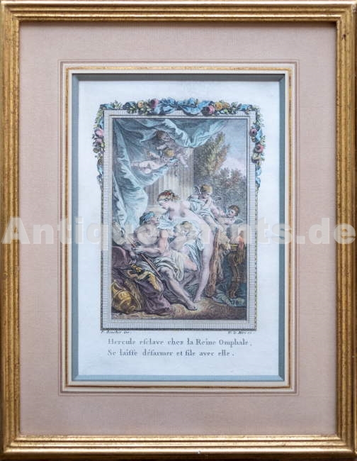 Mythology. Original copper engraving, engraved by N. Le Mire after F. Boucher. 1767. Very good condition. Hand-coloured. 15x11cm. Framed*: 29x23cm.
