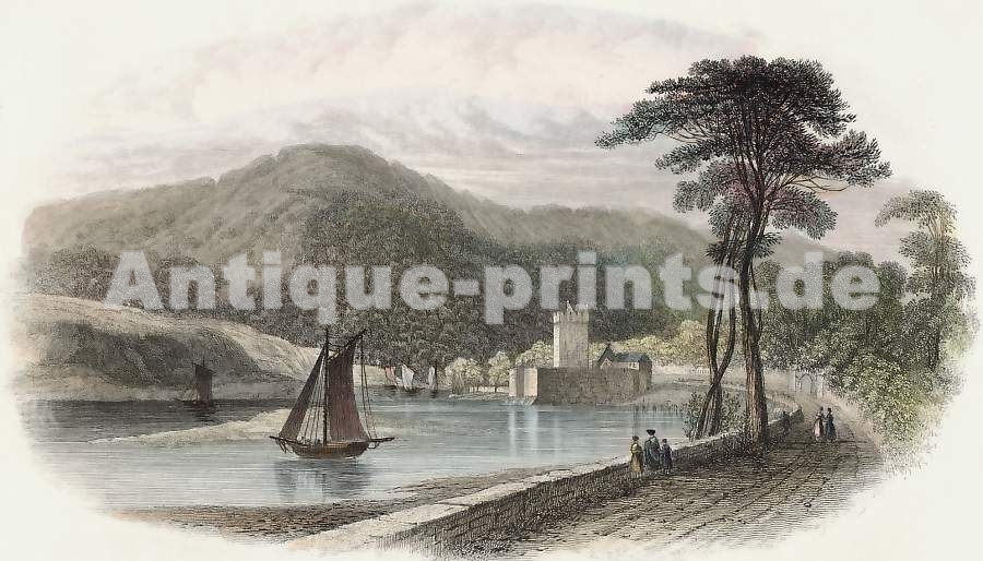 Ireland. Original steel engraving. 1863. Very good condition. Hand-coloured. 15x10cm. Matted.