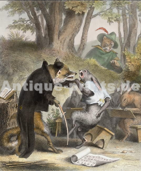 Le Roman de Renart. Gravure sur acier, gravée par A. H. Payne d´après H. Leutmann. 1852. Très bon état. Aquarellée à la main. 13x11cm. Montée sous passe-partout.