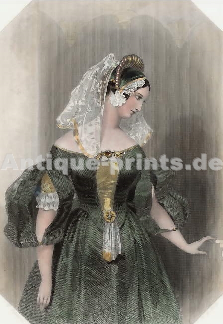 Syria. Original steel engraving drawn by A. W. Calcoott, after a sketch by C. Barry, engraved by E. Finden. Decorative border. ca 1860. Good condition. Hand-coloured. 13,5x10cm. Matted.