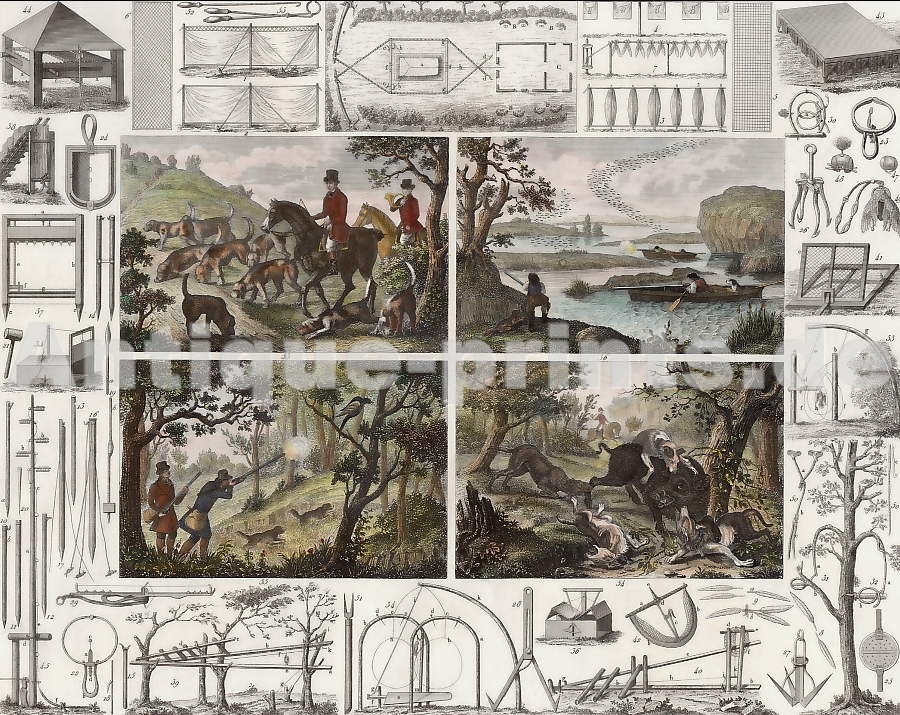 Chasse. Gravure sur acier, gravée par E. Hacker d´après A. Cooper. 1868. Très bon état. Aquarellée à la main. 14x10cm. Montée sous passe-partout.