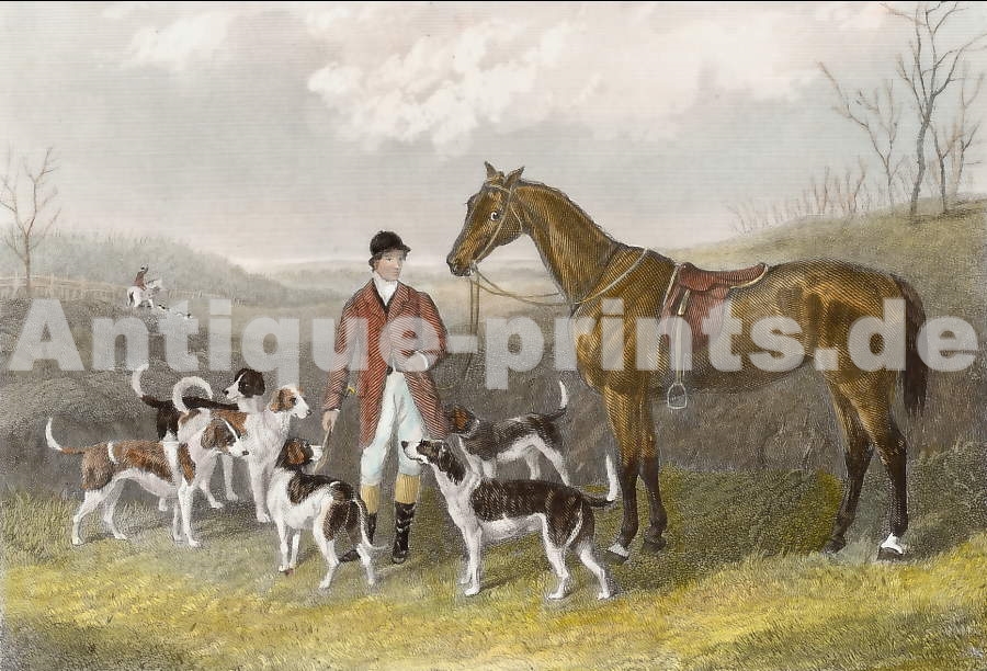 Chasse. Gravure tintée sur acier, gravée par A. H. Payne d´après Rosall. ca 1850. Très bon état. Aquarellée à la main. 20x15cm. Montée sous passe-partout.
