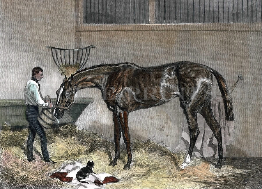 Militaria. Original steel engraving engraved by Joubert. 1838. Good condition. Hand-coloured. ca 10x10cm. Matted.