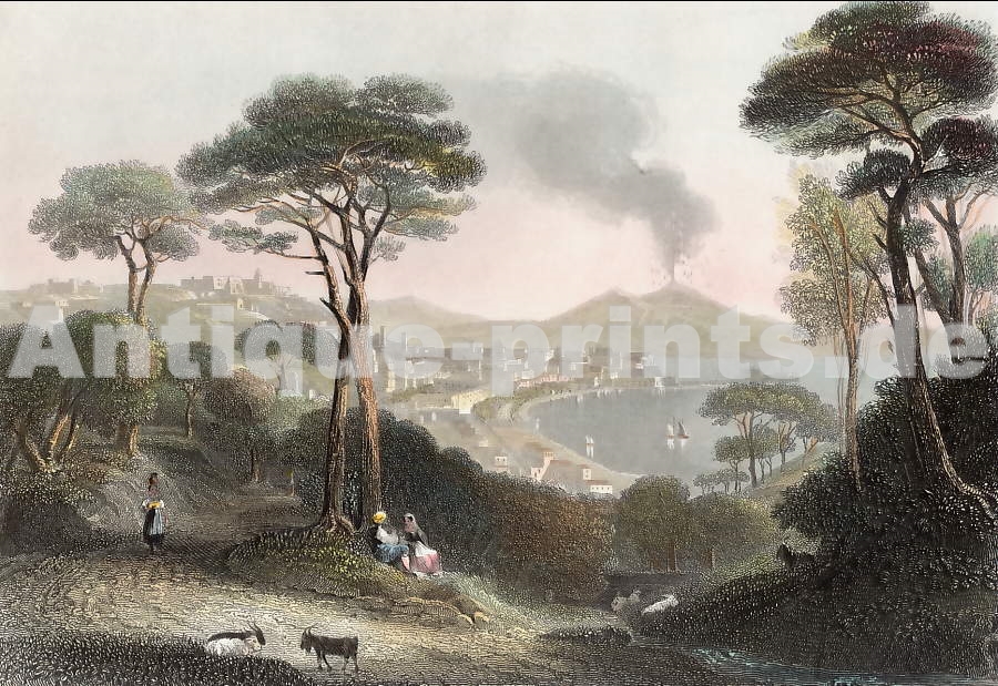 Sicile. Gravure sur acier dessinée et gravée par A. et E. Rouargue. 1865. Très bon état. Aquarellée à la main. 16,5x12cm. Montée sous passe-partout.