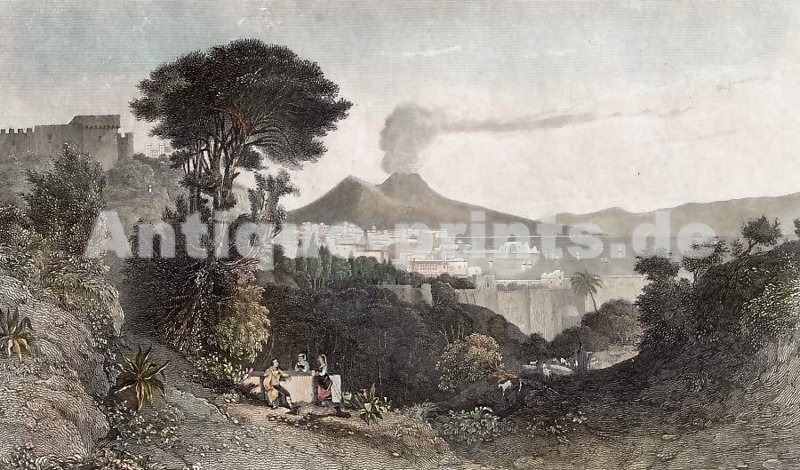Italie. Gravure sur acier, gravée par A. H. Payne d´après H. Bibby. 1846. Bon état. Aquarellée à la main. 15,5x11cm. Montée sous passe-partout.