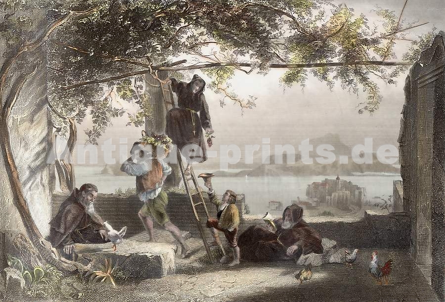Varia. Gravure sur acier gravée par Wranknorb d´après G. Cattermole. 1846. Bon état. Aquarellée à la main. 8x6cm. Montée sous passe-partout.