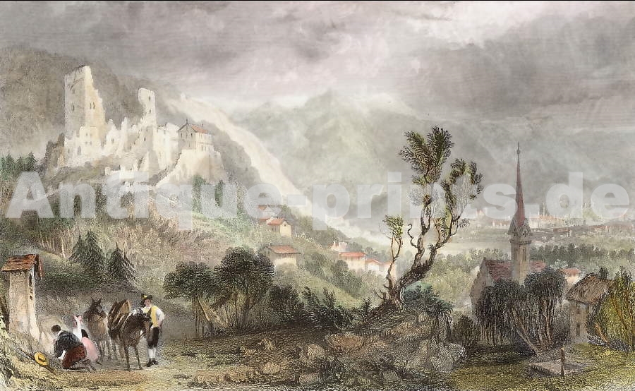 Pompeji. Kupferstich von F. Morghen nach N. Vanni. 1765. Restaurierter Riss im unteren Rand. Kein Titel. Handkoloriert. 32x22,5cm.