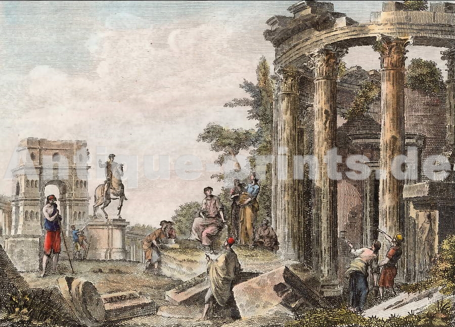 Griechenland. Stahlstich von E. Finden nach W. Turner. 1833. Sehr guter Zustand. Handkoloriert. 8x8cm. Mit Passepartout.