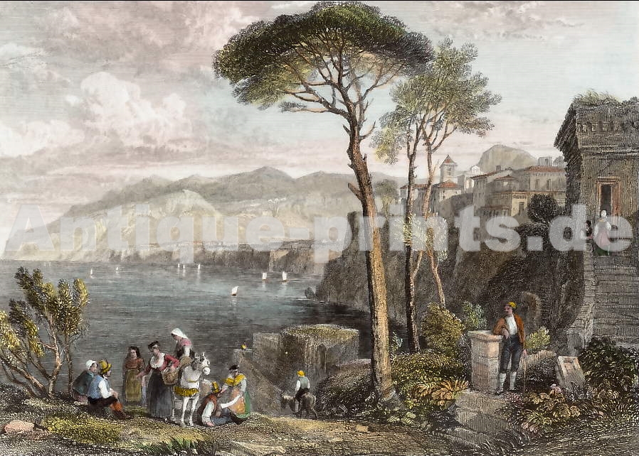 Italy. Original steel engraving drawn by W. Purser, engraved by E. Finden. 1833. Very good condition. Hand-coloured. 13x9cm. Matted.