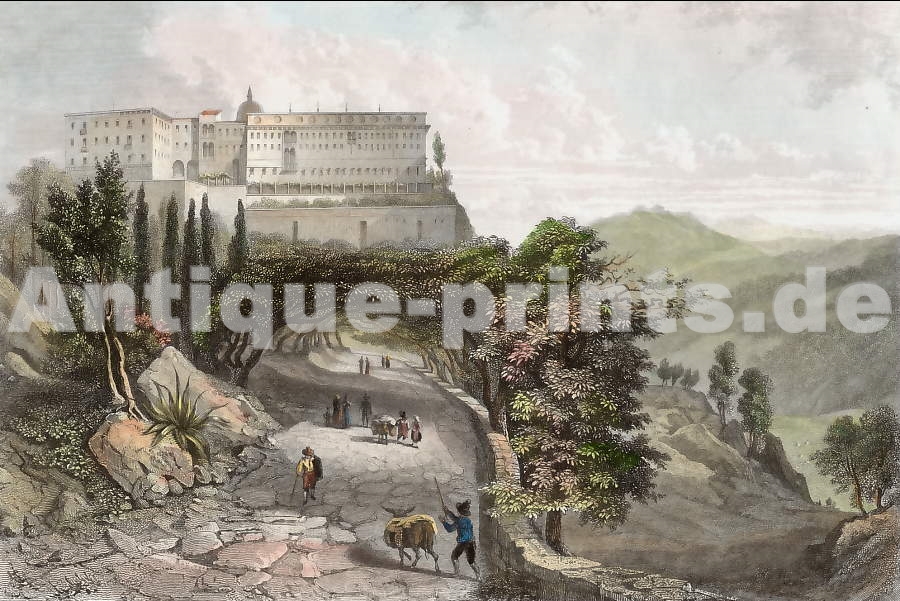 Italy. Original steel engraving drawn by C. Stanfield, engraved by W. Finden. 1836. Very good condition. Hand-coloured. 13,5x8,5cm. Matted.