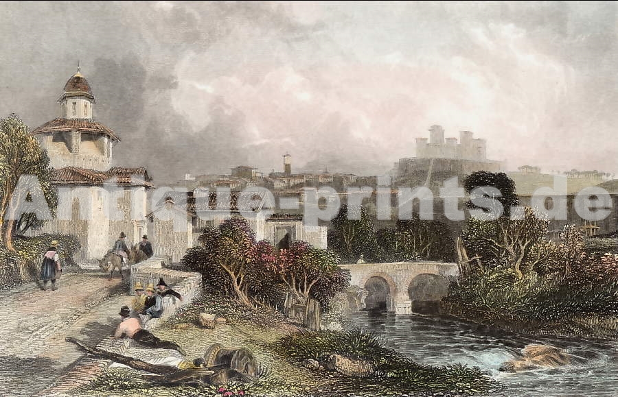 Tchéquie. Gravure sur acier, gravée par C. Daumerlang. 1838. Très bon état. Aquarellée à la main. 15x9,5cm. Montée sous passe-partout.