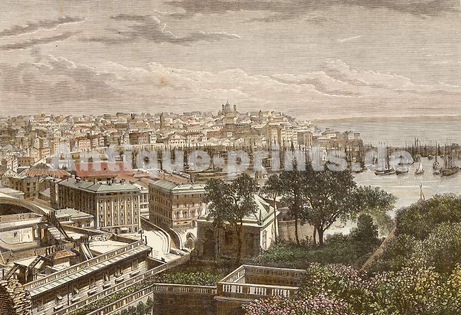 France. Gravure sur acier gravée par Couché et Desaulx d´après Jolivaux. 1835. Légères rousseurs dans les marges. Aquarellée à la main. 15,5x11cm. Montée sous passe-partout.