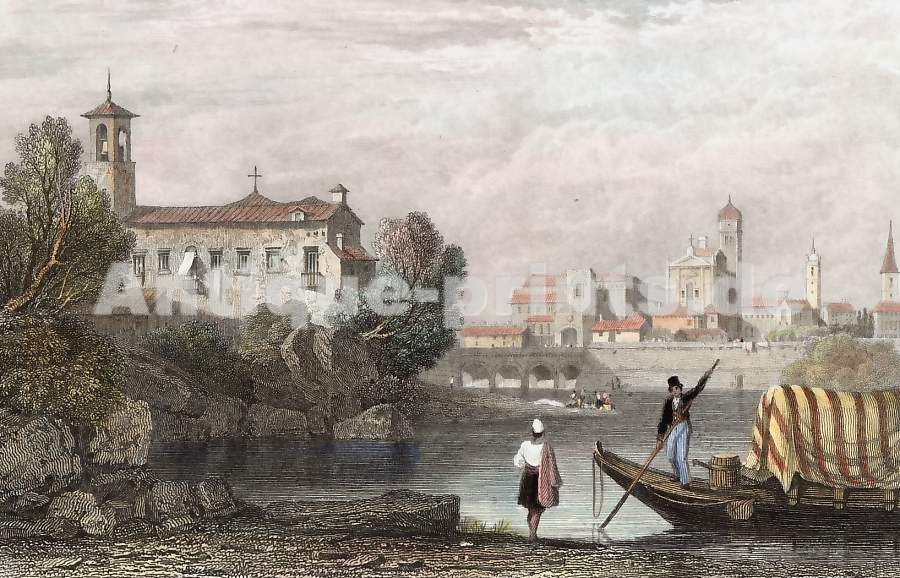Italie. Gravure sur acier, gravée par A. H. Payne d´après H. Bibby. ca 1840. Très bon état. Aquarellée à la main. 15,5x10cm. Montée sous passe-partout.