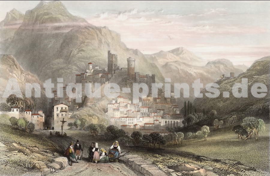 Italie. Gravure sur acier dessinée par A. Marx. ca 1850. Très bon état. Aquarellée à la main. 15,5x10cm. Montée sous passe-partout.
