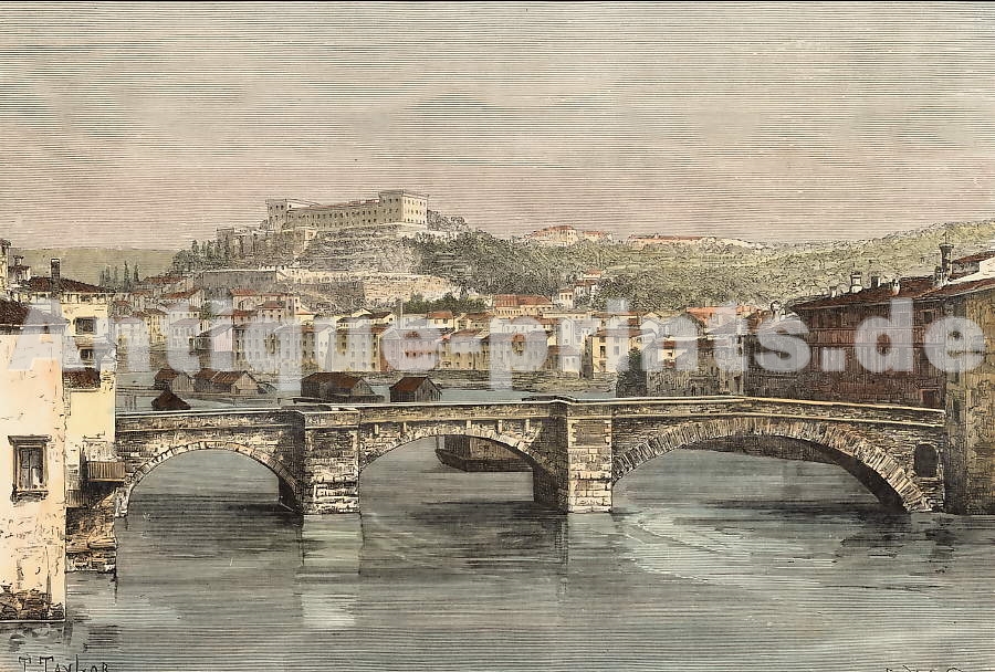 Italie. Gravure sur acier, gravée par J. J. Hinchliff d´après L. Mayer. 1828. Bon état. Aquarellée à la main. 15x9,5cm. Montée sous passe-partout.