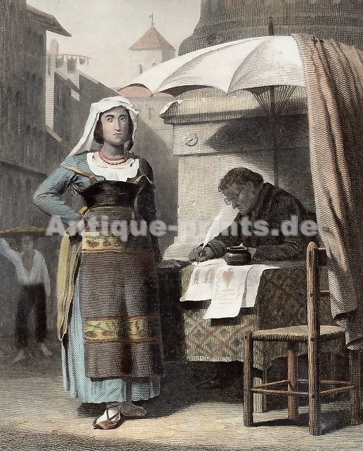 Italie. Gravure sur acier, gravée par Lemaître. 1850. Bon état. Aquarellée à la main. 12x8cm. Montée sous passe-partout.