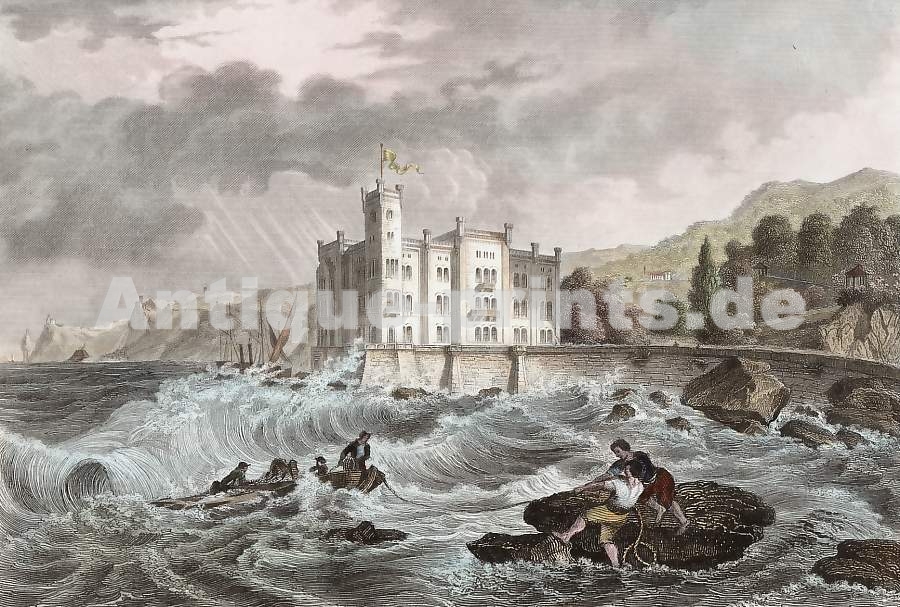 France. Gravure sur acier, gravée par Freebairn d´après C. Stanfield. 1836. Très bon état. Aquarellée à la main. 13,5x8,5cm. Montée sous passe-partout.
