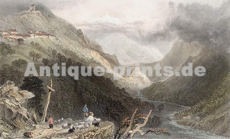 France. Original steel engraving drawn by A. Rouargue, engraved by E. Rouargue. 1845. Very good condition. Modern hand colouring. 15x10,5cm. Matted.