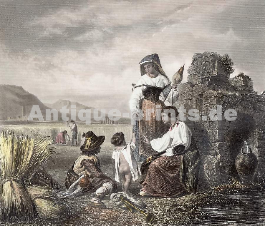 Italie. Gravure sur bois dessinée par Niederhausern-Koechlin. 1878. Très bon état. Aquarellée à la main. 19x13cm. Montée sous passe-partout.