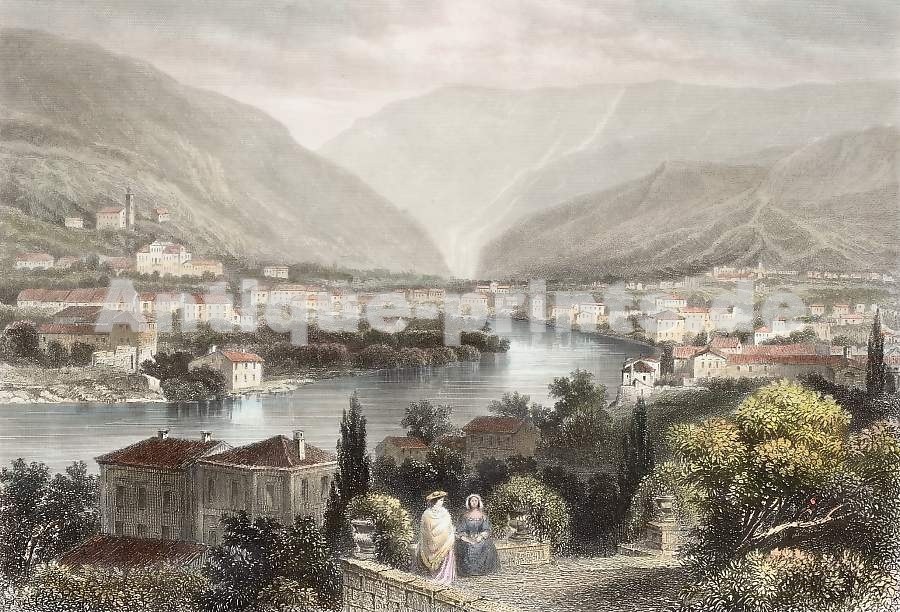 Italie. Gravure sur acier. Kleines Universum. 1841. Très bon état. Aquarellée à la main. 9,5x7cm. Montée sous passe-partout.