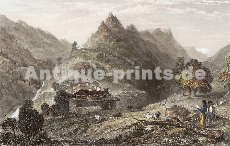 Italy. Original steel engraving drawn by J. D. Harding, engraved by T. Higham. 1832. Very good condition. Hand-coloured. 12,5x8,5cm. Matted.