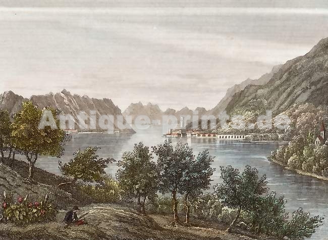 Italie. Gravure sur acier, dessinée par T. Allom. ca 1840. Légères salissures dans la marge supérieure. Aquarellée à la main. 15x11,5cm. Montée sous passe-partout.