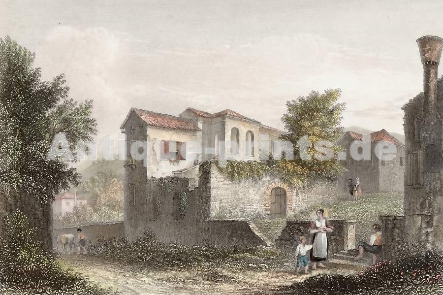 Italy. Original steel engraving drawn by H. Bibby, engraved by A. H. Payne. ca 1840. Very good condition. Hand-coloured. 15,5x10cm. Matted.