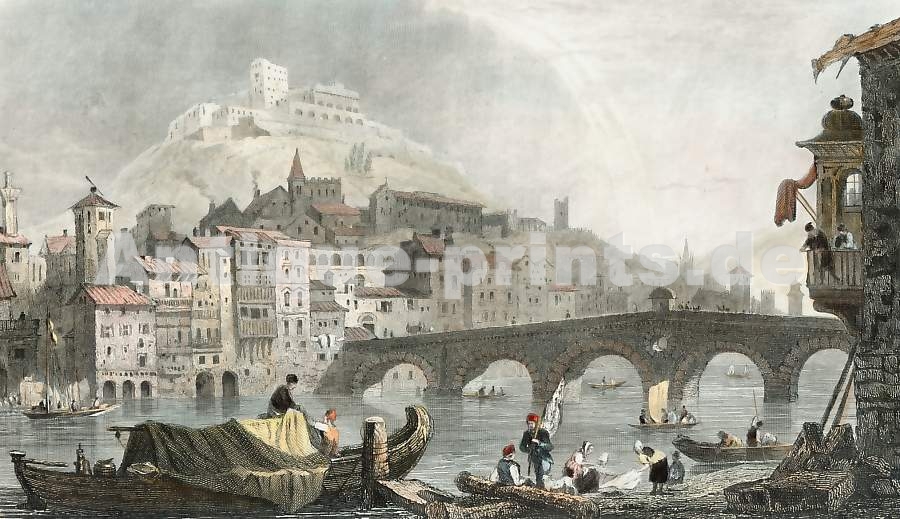Allemagne. Gravure sur bois par A Deroy. ca 1864. Très bon état. Aquarellage ancien. 22x15,5cm. Encadrée (36x29,5cm). Envoi par DHL uniquement.