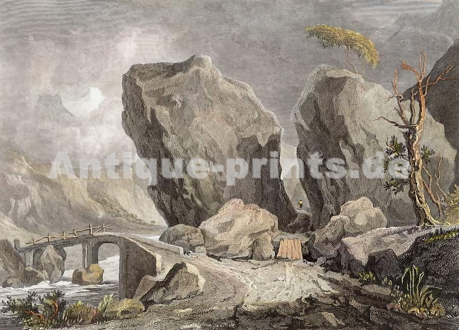 Allemagne. Gravure sur acier. ca 1850. Très bon état. Bordure décorative. Aquarellée à la main. 20x15cm. Montée sous passe-partout.