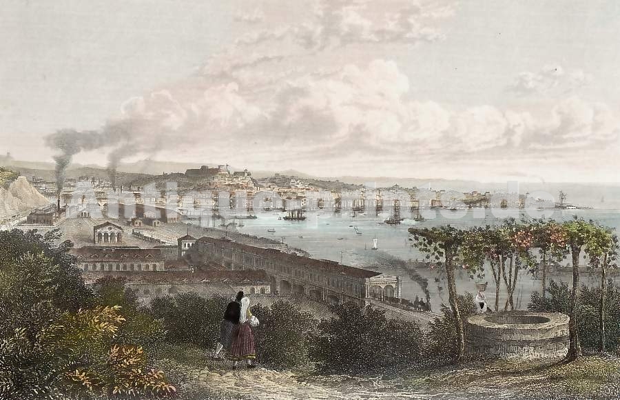 Italy. Original steel engraving drawn by C. Stanfield, engraved by W. Radclyffe. 1832. Very good condition. Small margins, as issued. Hand-coloured. 14x10cm. Matted.