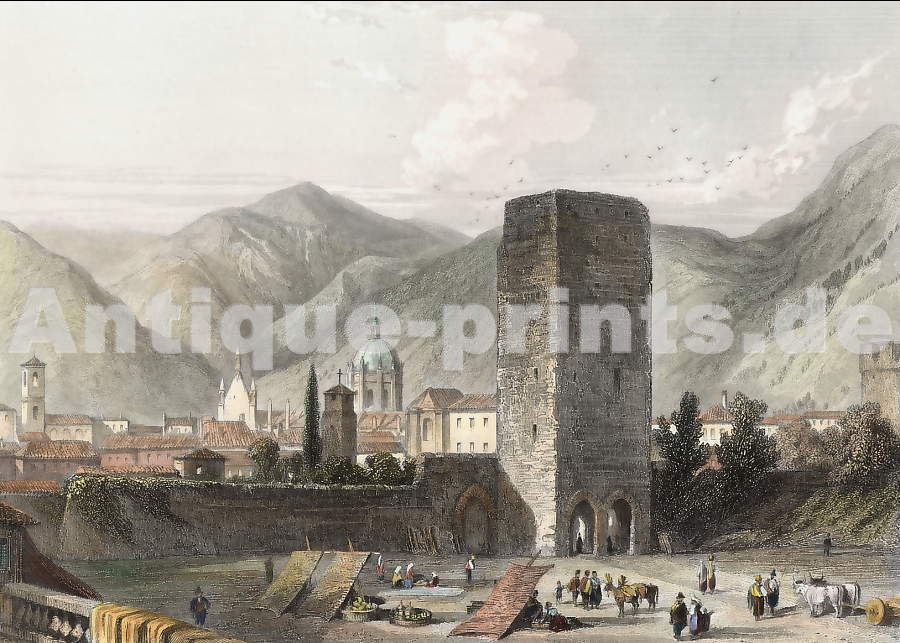 France. Gravure sur acier, gravée par T. Jeavons d´après W. Turner. 1837. Bon état. Aquarellée à la main. 13,5x10cm. Montée sous passe-partout.