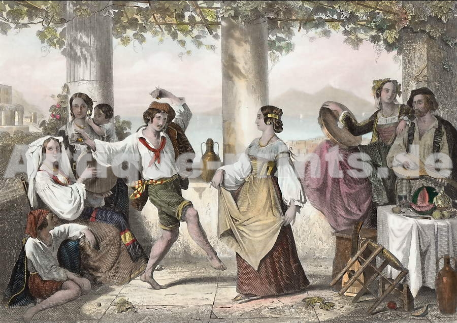 Italie. Gravure sur acier, gravée par G. Pommer d´après F. Piloty. ca 1850. Très bon état. Aquarellée à la main. 16,5x11,5cm. Montée sous passe-partout.