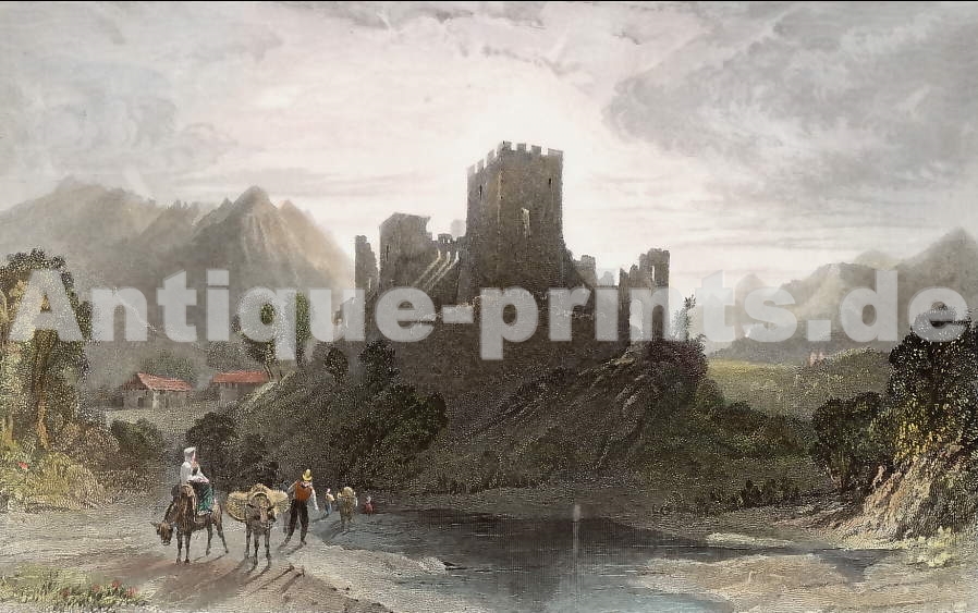 Holy Land. Original steel engraving drawn by W. H. Bartlett, engraved by R. Brandard. ca 1850. Good condition. Hand-coloured. 17,5x11cm. Matted.