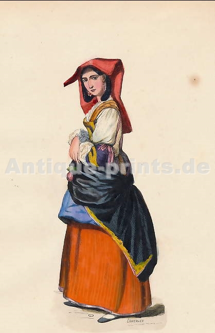 Italie. Gravure sur acier, gravée par E. Rouargue. 1841. Bon état. Aquarellée à la main. 14,5x10cm. Montée sous passe-partout.